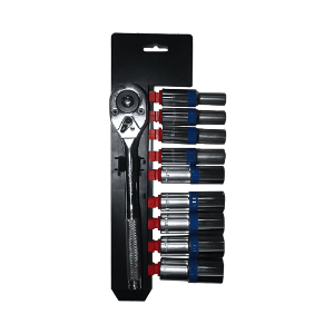 Set de priză de acționare manuală de 10pcs (1/2 ") este un set de instrumente versatil și durabil, conceput atât pentru mecanici profesioniști, cât și pentru pasionații de bricolaj. Cu un mâner de clichet de 1/2 ”și nouă prize adânci în dimensiuni 10, 12, 13, 14, 17, 19, 21, 22 și 24mm, acest set de prize oferă instrumentele esențiale necesare pentru o gamă largă de sarcini auto, mecanice și de întreținere a locuințelor.